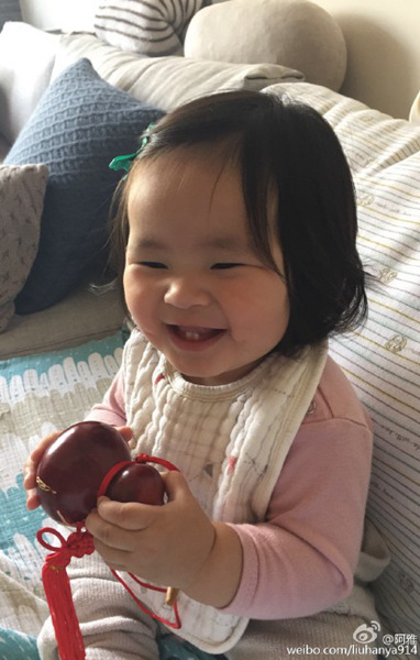 上一页 阿雅女儿萌照曝光 摆弄葫芦大笑露乳牙(图)(2)