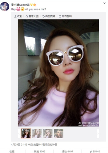 李小璐戴反光墨镜自拍 网友:神态与女儿一样(图)