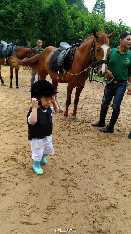 嗯哼穿骑马装的照片,嗯哼、甜馨、奥莉、蜜蜜同穿骑马装的合影,《爸爸回来了2》中所有老爸和萌娃的合影都在微博中呈现。