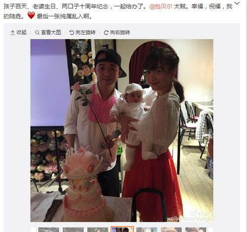 包贝尔为爱女办百日宴 一家三口温馨合照(组图)