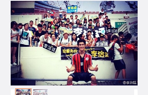 李治廷与陈妍希穿足球运动服合照 坐姿霸气(图)
