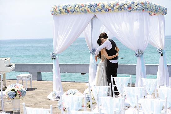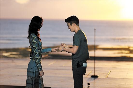 最浪漫的一幕,当属海边栈桥的一场模拟婚礼。乔任梁手捧鲜花,徐璐身穿白纱而来。蓝天,白云,沙滩,花瓣。徐璐很激动:“虽然我穿的高跟鞋很累,但是有他在,我想一直走下去。”乔任梁自己主持着婚礼,他问徐璐愿不愿意和他一起共度过余下的时光?妹子回答:“Yes, I do。”