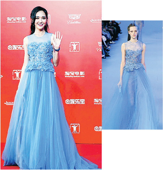 唐嫣礼服被指山寨 图片来源:香港“明报”