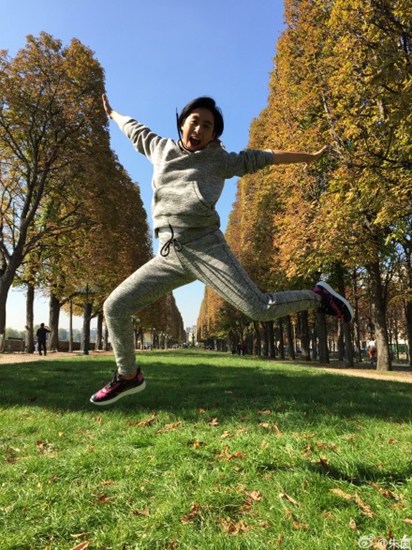 中新网10月10日电 昨日,朱茵在微博晒出一组在巴黎的美照,不仅有她穿着绿色上衣捧书阅读的模样,还有她穿着灰色休闲服腾空跳起、穿着短裙扒着栏杆与埃菲尔铁塔合影、手托一盘丰富食物等画面,古灵精怪。