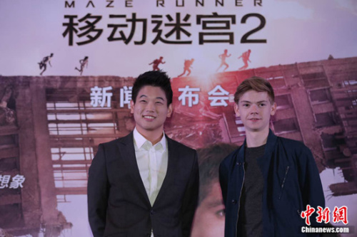 中新网北京10月21日电(记者 张曦)21日,好莱坞电影《移动迷宫2》在北京举行发布会及粉丝见面活动,主演托马斯·桑斯特(Thomas Sangster)、李起弘(Ki Hong Lee)出席助阵。回忆拍摄经历,李起弘表示非常辛苦,不仅缺水还缺氧。