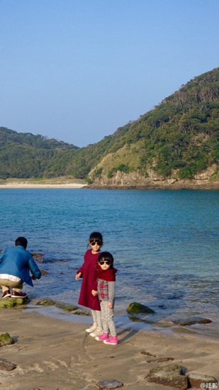 陆毅爱女牵妹妹站岸边 网友:大小贝儿太萌啦(图)