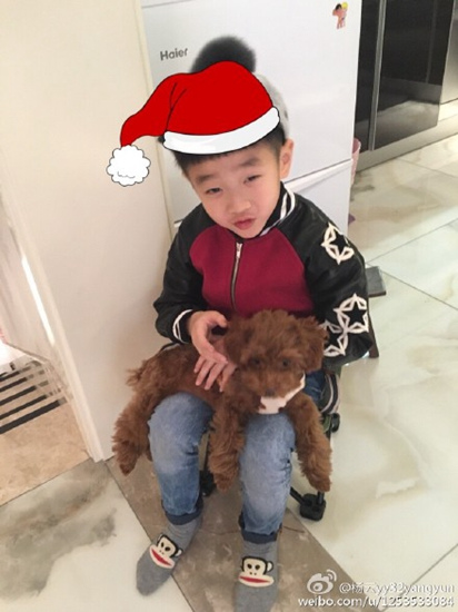 杨云晒爱子萌照 杨阳洋“戴”圣诞帽抱小狗(图)