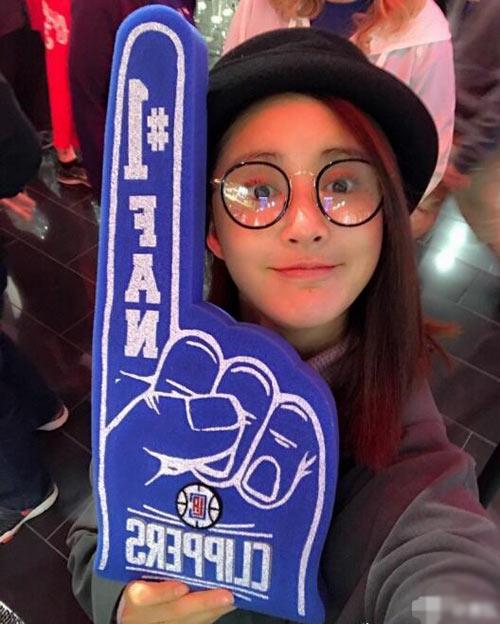 袁弘夫妇美国看球赛 张歆艺衣服宽大还说想生女儿