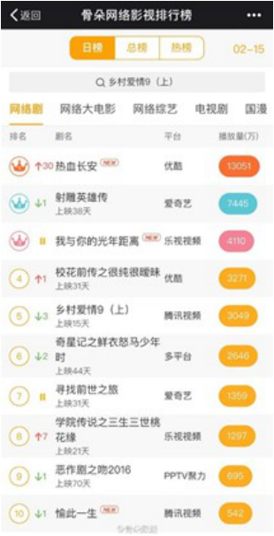 参与互动 如果说过去的网剧市场给人留下的印象是低成本小制作,那么,从2016年起,网剧便真正进入了“爆发”阶段。据统计,去年一年累计上线755部网剧,不仅在数量上创下新高,品质上也不断突破。《鬼吹灯》、《老九门》等网剧的热播,让市场呈现出制作成本越来越高、IP改编热度高涨、当红明星当仁不让的境况。