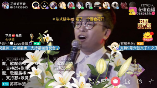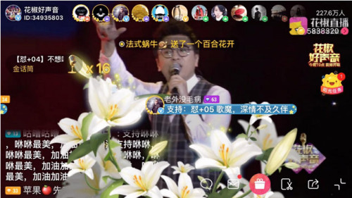 中新网4月25日电 4月23日晚,首场网红演唱会“花椒好声音”在京火爆开唱,10强花椒主播与人气明星现场飙歌。主播“歌魔.Boss”深情演绎经典曲《一生所爱》,仿若卢冠廷原音重现,引无数网友好评。