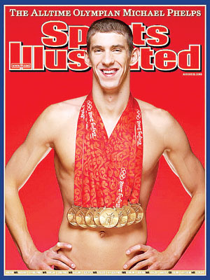 菲尔普斯身戴八块金牌,登上美国体育杂志封面