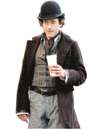 盖·里奇执导的新版《大侦探福尔摩斯》日前已经在伦敦热拍中,小罗伯特·唐尼扮演的“福尔摩斯”首次曝光,有网友评价说戴上礼帽的唐尼更像喜剧大师卓别林。