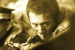 在随着人物的演绎一起“拧巴”的同时,刘烨和导演陆川都意识到,让这个浓眉大眼的男青年在密集的枪口下活着离开是一件几乎不可能的事,“在最初的剧本中,我饰演的军官本来要在屠杀中幸存下来,躲藏一段时间后最终逃出城,我们也已经拍摄了一部分这些戏。后来有一天,我和导演陆川发现不能这样继续发展下去,在当时的情况下,全城的青壮年都几乎无一幸免,这样一个身材高大的男青年怎么可能活着走出去?”就这样,刘烨扮演的陆建雄主动走上刑场,直视枪口,面无表情地死去。
