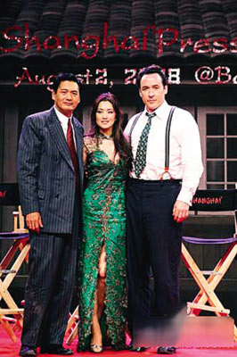 泰国当地时间8月2日,集合中、美、日红星的史诗式电影《上海》(又名《谍海风云》)在曼谷举行记者会。片中主演周润发、巩俐、约翰·库萨克全体到场造势。