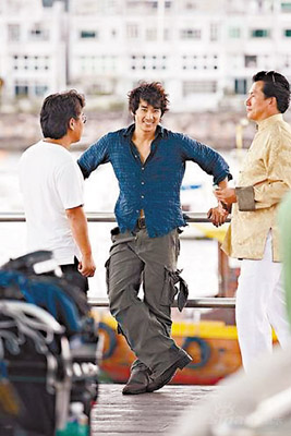 前天清晨,剧组共出动两艘游艇、两艘快艇以及两艘小艇出海拍摄,男主角宋承宪穿蓝色衬衫打扮邋遢,露出古铜色皮肤,李妍熙则以白色低胸露背装打扮清凉。宋承宪每拍完一场戏就返回码头挨在栏杆乘凉,与工作人员有说有笑。当记者上前访问,宋承宪礼貌地以“Sorry”示意拒绝访问。与李妍熙在艇上对稿,宋承宪不时照镜甚是爱美。剧组拍到天黑才收工,宋承宪在7时半离开,临走前与工作人员握手道别表示感谢。