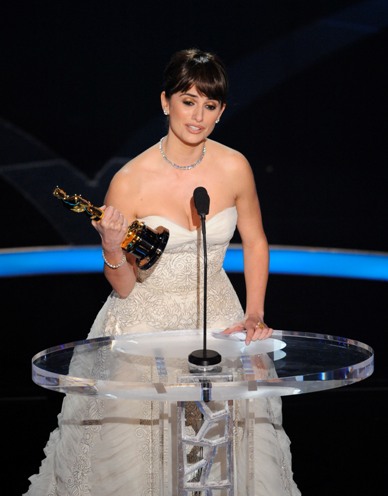 她上台后激动得要哭,笑言得奖感言只有45秒太快了,很担心说不完长长的感谢名单。随后,她拿出了小纸条感谢导演伍迪·艾伦给自己机会演出这样一个角色,感谢父母亲友,也感谢学院以及她的朋友、制作人兼温斯坦公司老总哈维·温斯坦。最后,她还用母语西班牙语再次发表了感言。