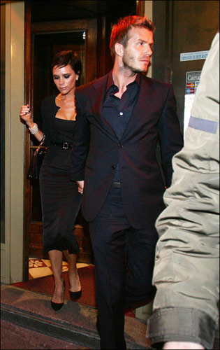 高出镜率夫妻贝克汉姆和维多利亚·贝克汉姆昨日(3月9日)二人手牵手浪漫外出就餐。当二人发现有狗仔队跟拍时,显然很高兴。当晚小贝身穿黑色休闲西装,酷感十足,十分的帅气。贝嫂则脱去了自己雷人的军官服和贵妇至极的皮草大衣,换上了庄重得体的黑色白领服装,低胸设计相当性感,看来有小贝在身边的贝嫂还算不错。