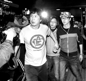 当庾澄庆与助手出闸时,记者即蜂拥而上。但他对离婚、赡养费和抚养小哈利等问题均拒作回应。庾澄庆说:“我可以从其他出口出去,让大家扑个空,但大家都是在工作,我会让你们拍,但别逼我说什么。”由于现场情况混乱,庾澄庆的助手因护主心切,与摄影记者发生冲突,哈林也怒喝:“你挡住我了!”而现场有记者因争相拍摄不慎跌倒。最后,庾澄庆在助手的护送下,匆匆坐车离开机场。