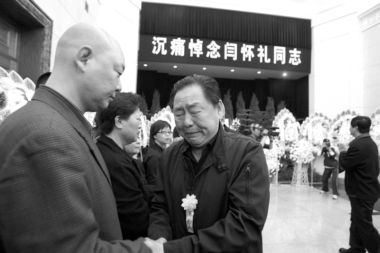 上午9时40分,迟重瑞、六小龄童和马德华携花圈来到现场。聚集在广场上的影迷和记者立即将3人团团围住。“他已修成金身罗汉,并将永远留在喜爱他的观众心里。”六小龄童激动地说。六小龄童表示,闫怀礼在天堂和他们心同在,他们是生死之交。同时他和马德华也透露,电视剧《吴承恩与西游记》将在今年暑期播出,这也是闫怀礼生前最关注的一件事。此外,《西游记》中的几个好兄弟也一直在策划《西游记》主题公园和电影《大闹天宫》,他们将尽快落实,以告慰闫怀礼的在天之灵。