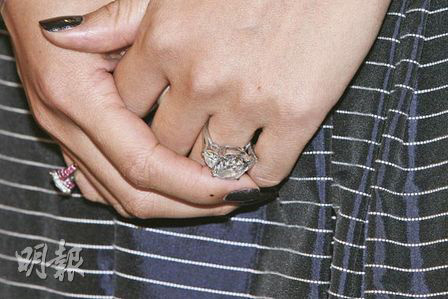 据香港《明报》报道,章子怡专程赴港参加代言活动,她穿着价值7000元(港币,下同)的吊带衫裙,左手无名指继续戴上她最爱的10克拉巨型钻戒,右手尾指亦戴上另一款巨型钻戒,再配以钻石手链大晒幸福贵气。贵为国际影星的她,全程戴上太阳眼镜,由她现身到访问结束离开,只有10分钟时间,而她身边除经理人、助手外,还有10名保安护驾,尽显大明星风范。活动于中午举行适值午饭时间,吸引好多市民驻足观看。