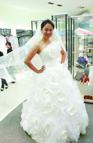 下月即将成为新娘的沈傲君婚纱还没有着落,近日,在拍片间隙的她匆匆忙忙赶往上海某婚纱店试穿婚纱。