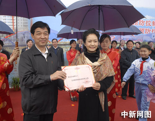 在宣传活动开幕式上,中国卫生部副部长王陇德还当场向中国著名歌唱家彭丽媛女士颁发了全国结核病防治形象大使证书。