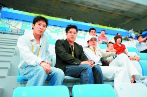 霍启刚、霍启山及母亲朱玲玲水立方为郭晶晶助威。
