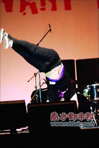 陈奕迅前日在香港与环球新人一同举办音乐会。音乐会上掀起了“K歌之王”旋风,玩到兴起时,陈奕迅在会场还玩起凌空倒立,惹歌迷大声尖叫。