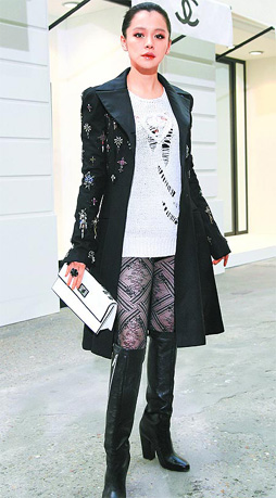 张惠妹以CHANEL裤袜搭配长靴出席活动。