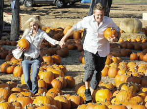满地尽带“黄金”瓜 采购户:海蒂·蒙塔格、男友斯宾塞·普拉特 黄灿灿的乐土,甜蜜蜜的心,和男友手牵手撒欢南瓜地,难怪美国女星蒙塔格乐得合不拢嘴。