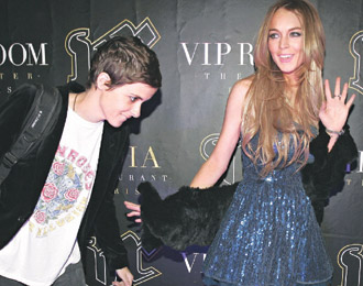 中新网11月16日电 林赛罗翰期待中的巴黎甜蜜订婚之旅,意外以不开心收场。她为了支持DJ女友珊曼莎朗森,特地陪对方出席巴黎夜店的派对,准备欣赏爱人的演出。结果,才刚进门接受完媒体拍照,突然被洒了一身面粉,原来动物保护人士不满她爱穿皮草,摆明要给她难看。