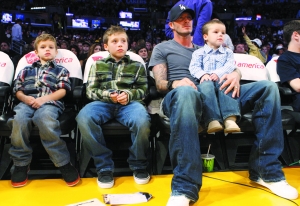 前日,贝克汉姆和汤姆·克鲁斯(靓汤)两家人感恩节后再度带着他们的全部儿女露面。靓汤和小贝显露出了他们做父亲的不同方式。贝克汉姆(上图)带儿子去看NBA,抱着2岁的克鲁兹,旁边坐着6岁的罗密欧和9岁的布鲁克林。