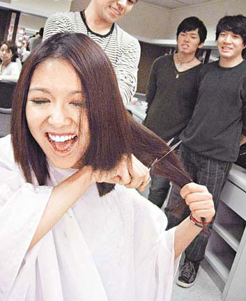 中新网12月4日电 薛凯琪(Fiona)和梁祖尧主演的舞台剧《Last Smile,First Tear》将于明天在香港演艺学院公演,为了配合角色需要,Fiona在导演要求下亲自操刀忍痛剪掉一把长发。