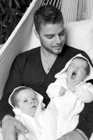 拉丁歌手瑞奇·马丁近日抱着他那通过代理孕母孕育的双胞胎儿子登上西班牙文版《HOLA!》杂志封面,随后又接受美国《人物》杂志,大谈爸爸经。瑞奇说他今年8月当爸爸,双胞胎目前4个月大。