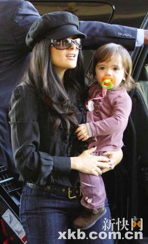 昨日,萨尔玛·海耶克(SalmaHayek)带着女儿外出,前往洛杉矶国际机场搭乘飞机。就在萨尔玛·海耶克急匆匆的前往登机口时,在她怀中的女儿瓦伦蒂娜(Valentina)却悠闲自得,在萨尔玛·海耶克的疾行步伐中,她一直好奇地望着跟拍的记者。