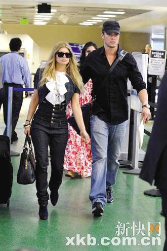 在马里布举行婚礼后的第二天,准备度蜜月的新婚夫妇菲姬和乔什·杜哈明抵达了洛杉矶国际机场。菲姬的经理人证实,菲姬与乔什·杜哈明于上周六在加州马里布的一家教会葡萄庄园举办了私人的婚礼仪式。