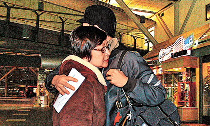 抵闸口时,Edison母子依依不舍深情拥抱,Edison跟母亲说声“Take care(保重)”后便由公司同事陪伴入闸,两保镖未有随行。据知Edison乘坐的是国泰航班商务客位。
