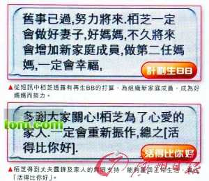 日前香港媒体曾透过张柏芝胞弟张豪龙慰问张柏芝,张豪龙以短信回复记者,而从字里行间可见,张柏芝显得相当坚强。