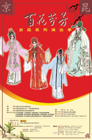 中新网3月12日电 为推动首都京昆戏曲艺术的繁荣与发展,进一步为京昆艺术新人新作搭建良好的艺术展示平台,中国文联继去年11月份成功推出“百花芬芳——京剧名家演唱周”后,由中国文联演艺中心联合上海昆剧团、北方昆曲剧院、永嘉昆剧团、江苏省苏州昆剧院、江苏省昆剧院、浙江昆剧团、湖南省昆剧团、中国戏曲学院、中国戏曲学院附中、中国京剧院、北京京剧院、北京戏曲艺术职业学院等12家单位共同打造的最新力作“百花芬芳——京昆戏曲演出季” 将于3月17日在民族文化宫大剧院拉开序幕,演出季将历时21天,共19场演出,拟通过此项活动推出21世纪京昆舞台艺术的领军人物,为首都观众呈献一次京昆艺术的饕餮盛宴,让广大的戏曲爱好者走进民族宫、走近民族文化。