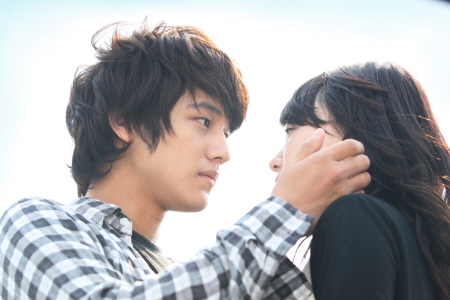 中新网5月27日电 据体育朝鲜报道,近日,“花男”金泛和韩国新生代偶像金星的银幕初吻照曝光。在青春动作片《飞翔》中,金泛和金星扮演一对悲情情侣,两人都在大银幕上献出了银幕初吻,上演20岁青涩少年既懵懂、浪漫而又心痛的吻戏。