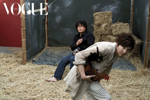 中新网5月27日电 近日,电影《母亲》的导演奉俊昊和男主角元彬一同站在了镜头前。奉俊昊和元彬一起为时尚杂志《VOGUE》拍摄了画报。