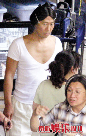 在《十月围城》中,黎明放下天王巨星的架子,扮演一名乞丐,也是“六义士”之一。乞丐已经是一个够倒霉的角色了,没想到片场休息,黎明把假发一梳弄,竟成了惊世骇俗的天王级“如花”,不过据说扮丑很容易拿影帝,黎明显然是下定决心不怕牺牲了,刚刚出演过梅兰芳的粉面就直接被化妆师糟蹋成黑脸,还特别给这位没钱理发的乞丐先生留了一头换七八糟的长发。长发未免有点热,黎天王倒也挺能应付,脱了戏服穿件“老头衫”,还用两个发卡把头发梳弄上去,有利散热。摄影师的长镜头在片场找了很久,才终于在导演棚里找到了“黎如花”。