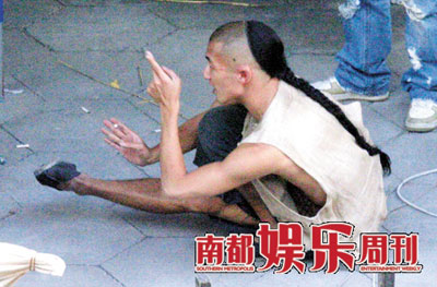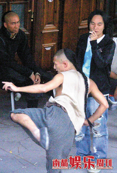 谢霆锋在片中是一个拉黄包车的“车夫”,“六义士”之一。他在片场表现极其活跃,不仅主动找人“挑战”,还积极练功,一丝也不懈怠。自从结婚生孩子后,谢霆锋就自作主张转型成“动作演员”了,每部戏就力求从头打到尾。动作戏,时间短,片酬高,谁都爱接(详情请参阅本期重点)。问题是谢霆锋原本是个摔吉他的,现在换了要打架摔跤,基础略有些薄弱。为此谢霆锋一直孜孜不倦,努力学习,在片场看见熟悉的武行就要和对方“套招”,大家都不理他了,他还一个人玩起撑地踢腿。通过努力锻炼,谢霆锋的功夫的确见长。