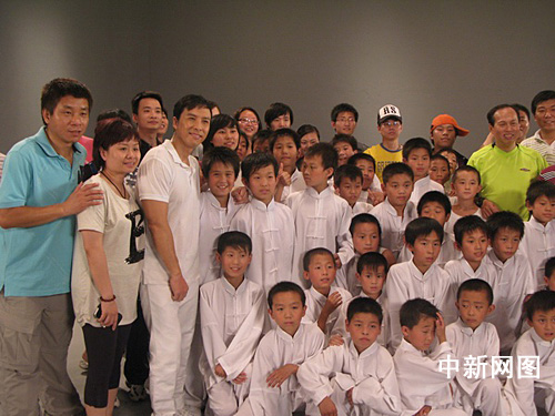 甄子丹带伤拍摄公益广告 领学生大练咏春拳(组图)(5)