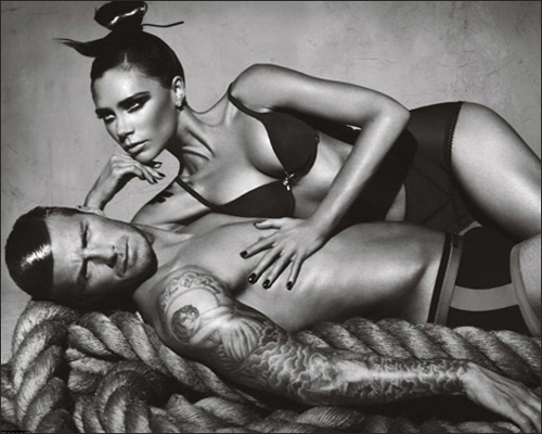贝克汉姆和辣妹维多利亚·贝克汉姆两个人携手开始捞金行动,为阿玛尼最新系列的内衣拍摄广告,广告中两个人身穿内衣,暧昧无比,十足诱惑。