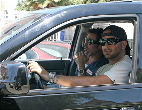 布拉德·皮特帅气出行 摩托车抛锚尴尬向狗仔求助(4)