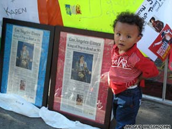 中新网7月7日电 今年只有两岁的YaYa, 2可能是天王迈克尔.杰克逊最小的歌迷,图为他周日站在好莱坞星光大道上纪念杰克逊的死亡。