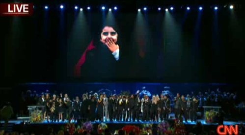 中新网7月8日电 CNN消息,杰克逊公众追思会接近尾声,杰克逊子女上台与众星合唱了他的代表作《we are the world》。