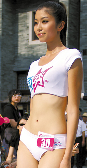 前天下午,第8届南方新丝路模特大赛在岭南印象园举行了一场另类时尚的“岭南风”开营仪式。从千余报名者中脱颖而出的40名“准模特”,身着性感露脐装,舞动两条气势磅礴的中国龙穿行在古朴的镬耳墙和青云巷中,传统和时尚的巨大反差吸引了不少游客和摄影发烧友的围观。