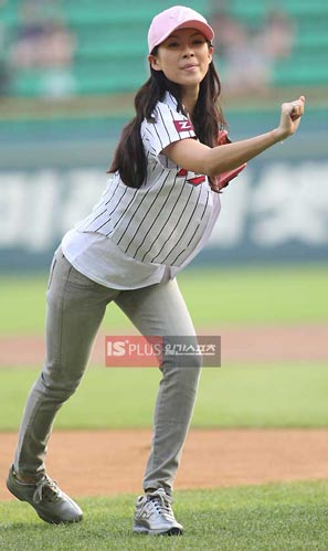 章子怡红到韩国棒球界 比赛开球露底裤(组图)(2)